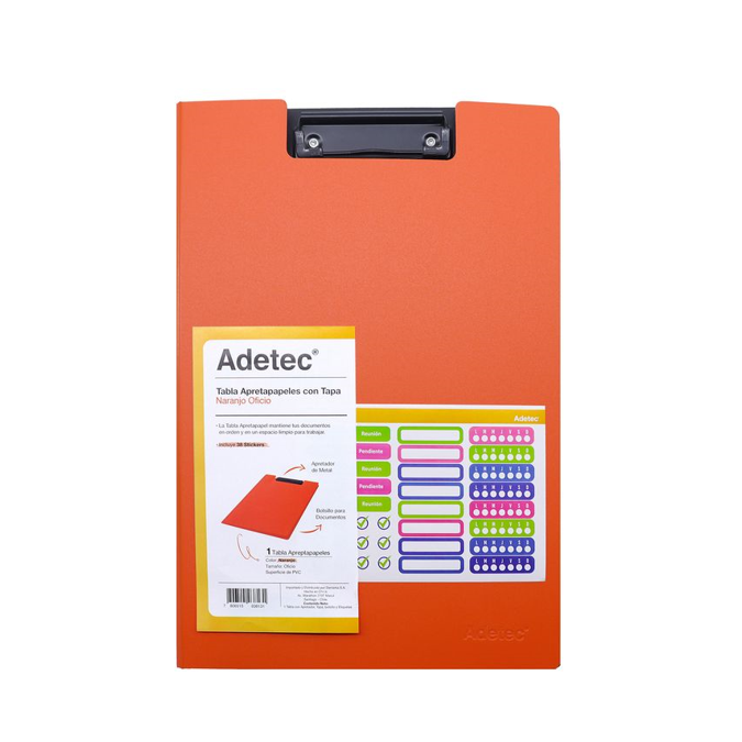 Tabla Apretapapel Con Tapa Naranja Adetec